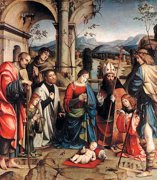 Франческо Франча. Поклонение младенцу. ок. 1498–1499. Национальная пинакотека, Болонья