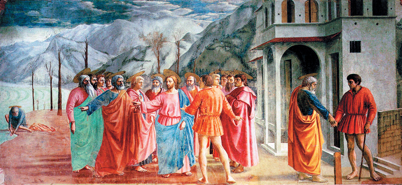 Мазаччо. Чудо со статиром. 1425–1927. Часовня Бранкаччи, церковь Санта-Мария-дель-Кармине, Флоренция
