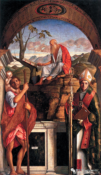 Джованни Беллини. Алтарный образ. Святой Христофор, Иероним и Людовик Тулузский. 1513. Церковь Сан-Джованни-Кризостомо, Венеция