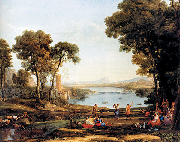 Клод Лоррен. Пейзаж с Психеей на фоне дворца Купидона (Очарованный замок). 1664. Лондонская национальная галерея, Лондон