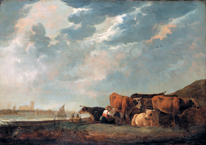 Альберт Кёйп. Крупный рогатый скот у реки Маас, близ Дордрехта. XVII век. Даличская картинная галерея, Лондон