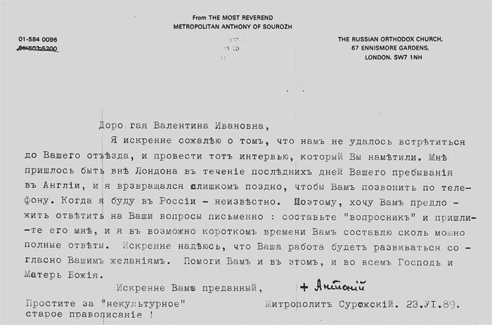 Я приехала в Лондон впервые в 1989 году. Друзья, провожая, говорили: «Счастливая, Владыку Антония увидишь».