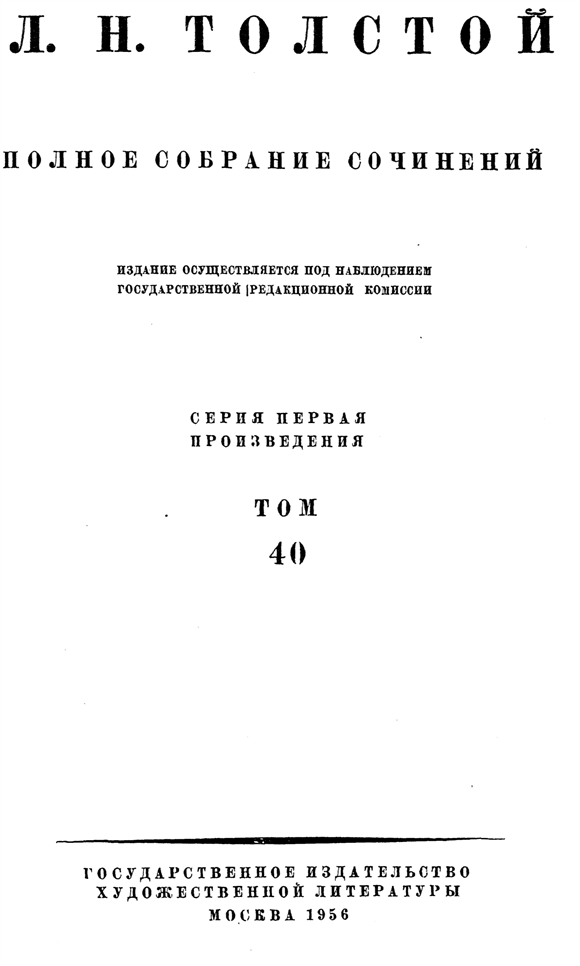 Настоящее юбилейное издание первого полного собрания сочинений Л. Н. Толстого печатается на основании постановлений Совета Народных Комиссаров СССР от 24 июня 1925 г., 8 августа 1934 г. и 28 августа 1939 г.