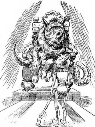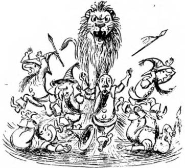 Лев рассвирепел и стремительно бросился в гору, грозно рыча и хлеща себя хвостом по бокам. Но два или три Безруких Коротыша так ударили его своими плоскими головами, что Лев покатился по склону горы, кувыркаясь и мяукая, как самый простой кот. Он встал сконфуженный и, хромая, отошел от подножия горы.