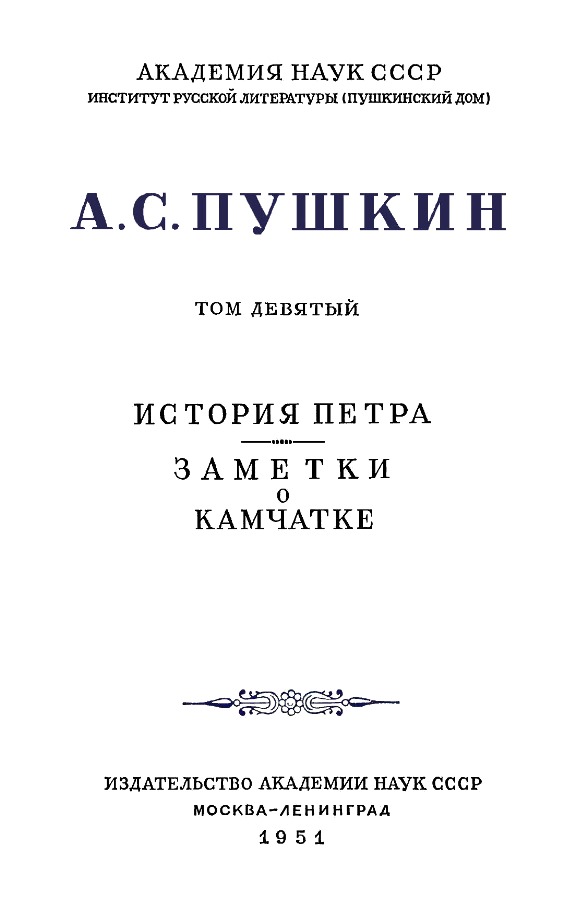 В девятый том Полного собрания сочинений Александра Сергеевича Пушкина вошли История Петра и Заметки о Камчатке.