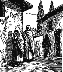 Арабская сказка встретила нас, когда мы вышли на улицу искать дом старого газзана. Тополи ханского дворца при луне высятся до самого неба, по улице идут женщины в белом, как привидения, в звуках струйки фонтана узнаешь начало всей нашей музыки. Где-то в дремлющих темных заулках мы разыскали большой старый дом и вошли на его двор, окруженный покосившимися зданиями со стеклянными галереями. На дворе, освещенном только луной, в этом хаосе деревянных развалин мы долго искали чего-нибудь похожего на вход. Наконец сверху, в стеклянной галерее, раздался стук деревянных башмаков, и свесился к нам горбатый силуэт старухи; она и привела нас к газзану. Неожиданной, как домик в глухом лесу, была эта опрятная комната караимского газзана. Старая, скромная скрипящая мебель, картины с библейскими сюжетами – все было похоже на обстановку какого-нибудь нашего провинциального батюшки, только свиток пергаментной Торы на столе под стеклянным колпаком подсказывал, что арабская сказка все еще продолжается.