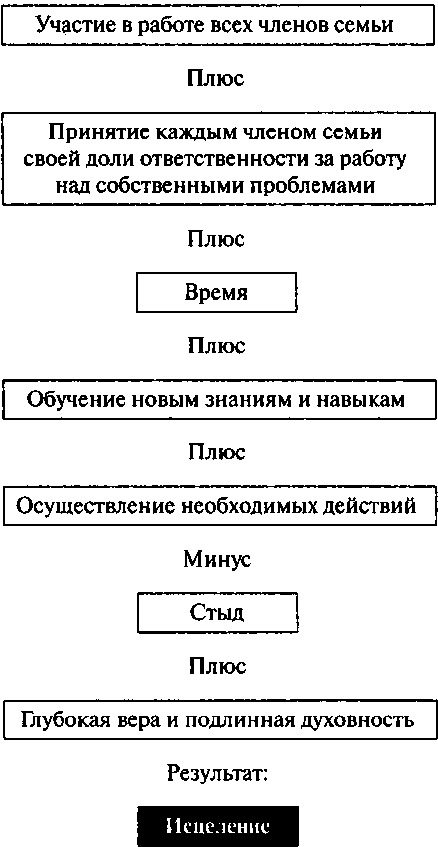 Итак, в дисфункциональной семье у каждого из ее членов — своя проблема, своя боль. Каждый нуждается в помощи. Помощь приходит в разных формах. Это может быть любящее понимание со стороны другого члена семьи или милосердное, но твердое противостояние проблеме, предпринятое единоверцами[6].