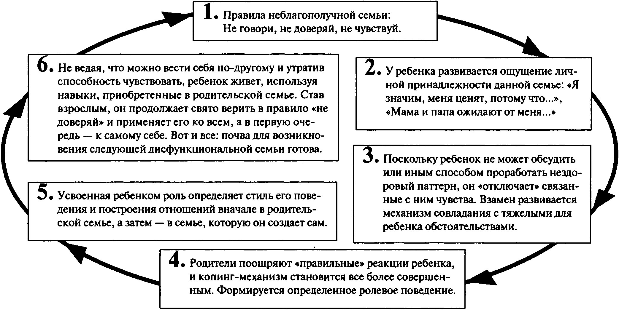 • Замалчивание проблемы и собственных переживаний: никто в доме никогда не обсуждал ни сам проступок, ни наказание; никто не высказывал связанные с ними чувства и мысли.