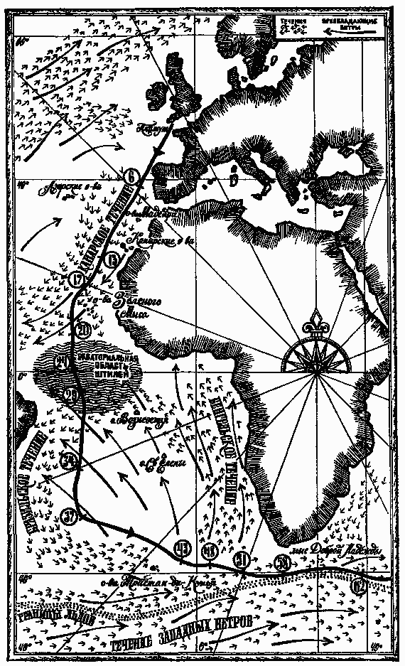 Мне не хватало штурманской карты Северной Атлантики (я забыл захватить этот лист при отъезде), но по карте адмиралтейства я уже был за весенней мартовской границей северо-восточных пассатов, хотя все еще в 660 милях к югу от летней августовской границы. С нетерпением ждал северо-восточных пассатов.