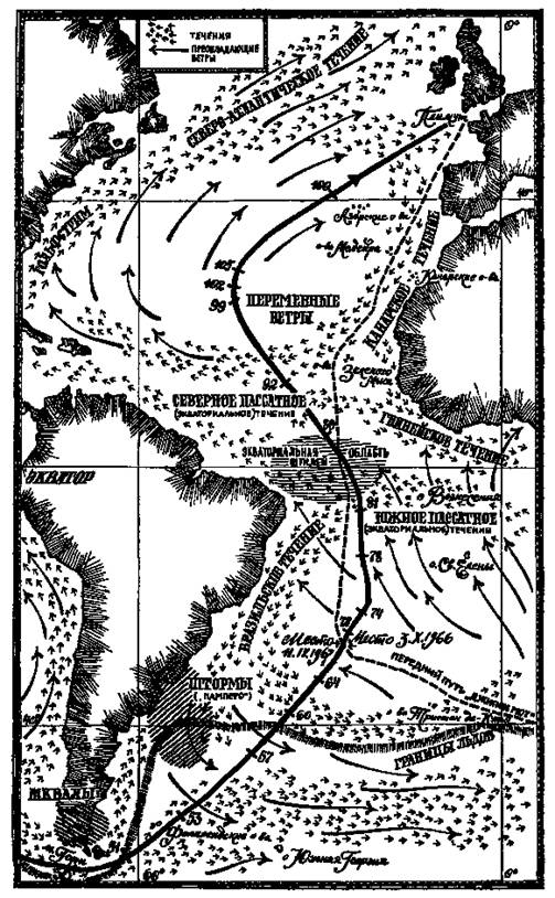 Чего же достиг Чичестер вопреки серьезным дефектам в конструкции и оснащении яхты, вопреки капризам погоды и ветров, вопреки непривычному климату и ярости океанских валов и, наконец, вопреки одолевавшим его недугам?
