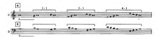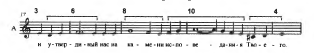 Все дальнейшие проведения этой формулы, или «ядра», запрограммированы текстом: формула растягивается или сокращается в зависимости от длины слов. В схеме 3 показан алгоритм преобразования высотных структур данного «ядра» в зависимости от конструкций слов, состоящих из одного, двух, трех и четырех слогов.