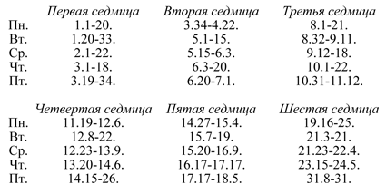 Важно отметить в этой связи, что текст Притчей глубоко вошел в русскую словесность и речевую культуру. Этот текст, — по сути дела, почти что в полном объеме (как правило, за исключением юмористических или эротических разделов) — входит в круг паремийных чтений Великого Поста. Для тех, кто интересуется православным богослужением и местом Книги Притчей в Великопостном богослужебном круге, мы приводим поденную таблицу чтений.