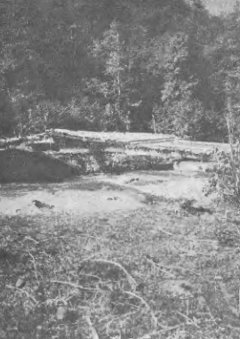 За мостом пещера. Здесь всегда на пути отдыхают пустынники. Громадная глыба камней со всех сторон плотно сжата лесом, а перед самым входом несутся белые волны Брамбы. В пещере очень уютная «обстановка». Камни для сиденья, «стол», немного сбоку место, выжженое костром. Воткнута палка с крючком на конце — вешать чайник.
