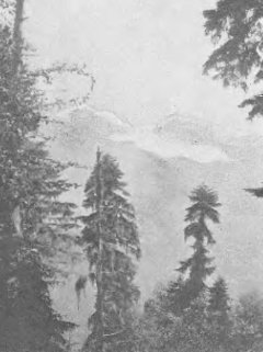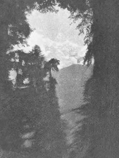 На одной из таких остановок я долго ждал, чтобы прошли облака — хотелось снять горы. О. Сергий, опершись на палку, задумался. Он стоял на упавшем пне, около большой, совершенно одинокой в этом месте, пихты. Я не мог удержаться: перевел аппарат и снял его.