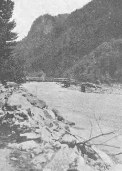 В одном из самых узких мест проложен мост. Эти мосты через горные реки буквально висят в воздухе. Их делают турки для перевозки дранки на вьюченных лошадях. Укрепить их в реке, разумеется, нет никакой возможности, и мост держится двумя своими концами. Когда идешь по нему, он ходит ходуном, скрипит и качается как качели, и если бы волны могли захлестнуть его, они снесли бы весь мост, как щепку! На полпути о. Иван говорит: