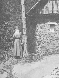 Поляна, на которой стоит келья о. Герасима, гораздо меньше, чем у о. Никифора. Лес придвинулся совсем близко: с одной стороны кельи, поднимаясь в гору, с другой — спускаясь уступами. Около кельи разбит небольшой огород. Посажены картофель и несколько кустов фасоли. Из-за леса поднимается хребет снежных гор, и общее впечатление от всего совсем иное, чем у о. Никифора. Там веселое, открытое, ровное место. Здесь — глухое, замкнутое, одинокое… Зелень густая, темная. И келья хоть и больше, чем у о. Никифора, но неуютная, почти враждебная.