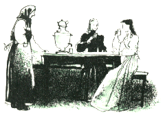 Анна Михайловна привела детей в свою комнату, одна половина которой, отделенная шерстяной драпировкой, служила спальней, а другая представляла что-то вроде не то уборной, не то маленькой гостиной и была уставлена самой разнообразной мебелью. Едва дети успели усесться на низенький диванчик подле тетки и ответить на несколько вопросов ее о их прежней жизни, как в комнату вошла Дуняша, неся в руках две чашки теплой воды, слегка разбавленной чаем, почти без сахара и два тоненьких ломтика булки. Анна Михайловна, не ожидавшая, что ее племянники получат даже такой скудный завтрак, видимо, очень обрадовалась; но дети, привыкшие дома к другого рода пище, вовсе не разделяли ее радости, хотя из деликатности не сказали, что им хотелось бы чего-нибудь посытнее и повкуснее.