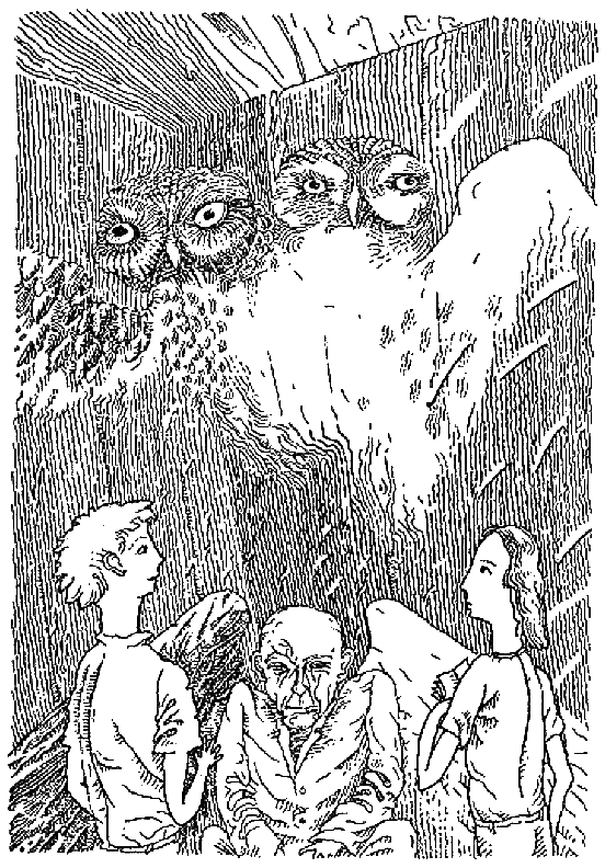 Пока мы сидели на корточках под окном, на чердак влетели совы и уселись на раму над нашими головами.