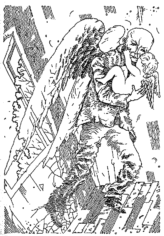 За спиной его вздымались крылья, а на мертвенно-бледном лице нежно мерцала улыбка.