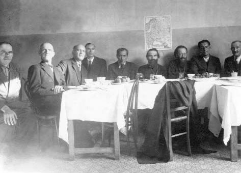 Освящение иконы «Богоматерь Страстная» в русском приходе в Париже (август 1941 г.). О. Димитрий сидит между о. Александром Чеканом и Ю.П. Казачкиным