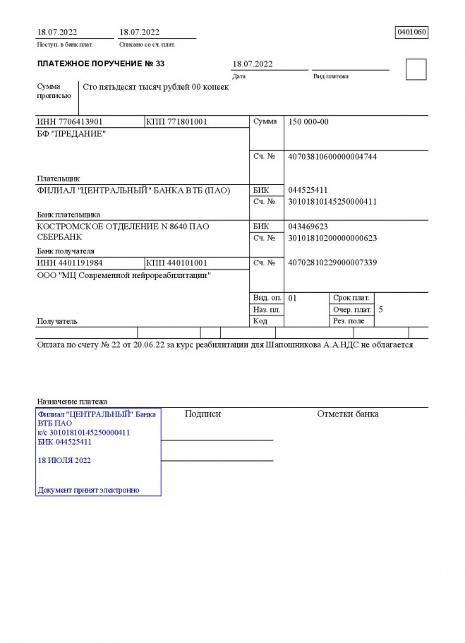 Оплачен второй курс реабилитации Арсения Шапошникова в "МЦ Современной нейрореабилитации".