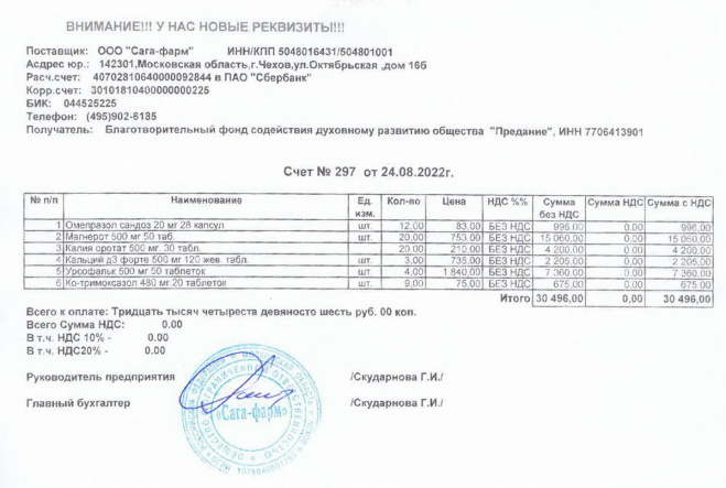Пожертвование согласно ст.582 ГК РФ. Без налога (НДС)