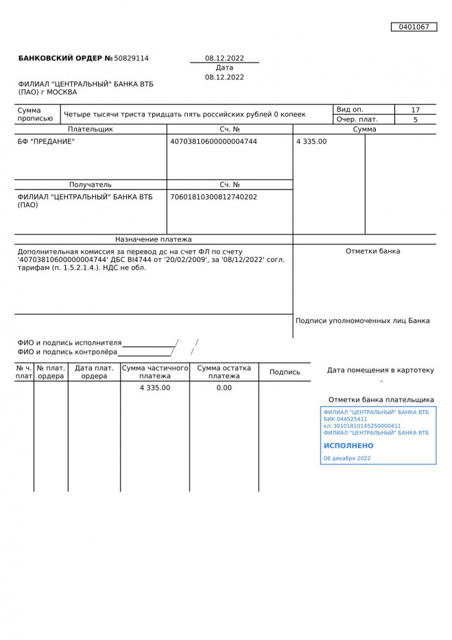 Перечислено вознаграждение за ноябрь программисту-разработчику Близнюку А.И.