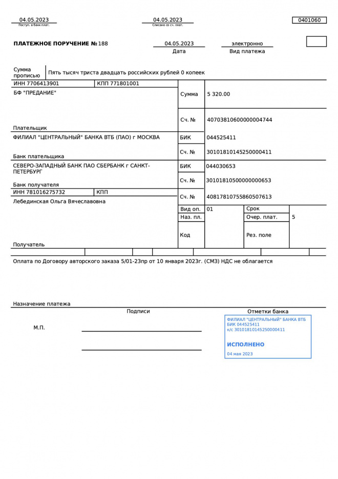 Переведены средства за написание и корректировку статей в апреле 2023 г. Тимуру Аркадьевичу Щукину (статья), Алексею Сергеевичу Ремизову (статья), Евгении Александровне Новосельцевой (статья), Денису Александровичу Маханько (статья), Ольге Вячеславовне Лебединской (статья), Марии Павловне Пискуновой (статья), Вадиму Валентиновичу Оленину (корректировка)