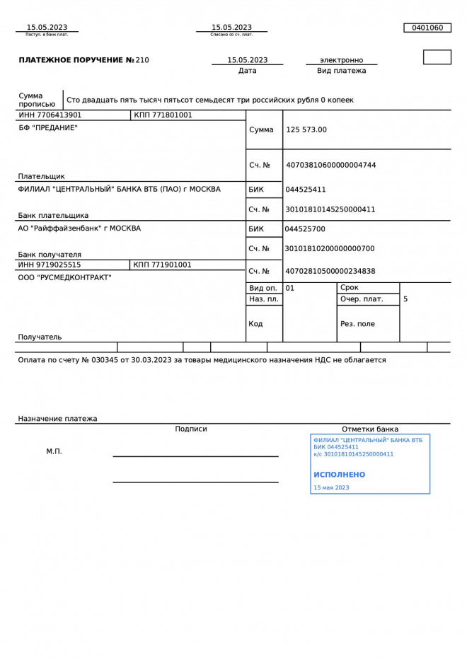 Оплачена покупка товаров медицинского назначения Володе Черевачу