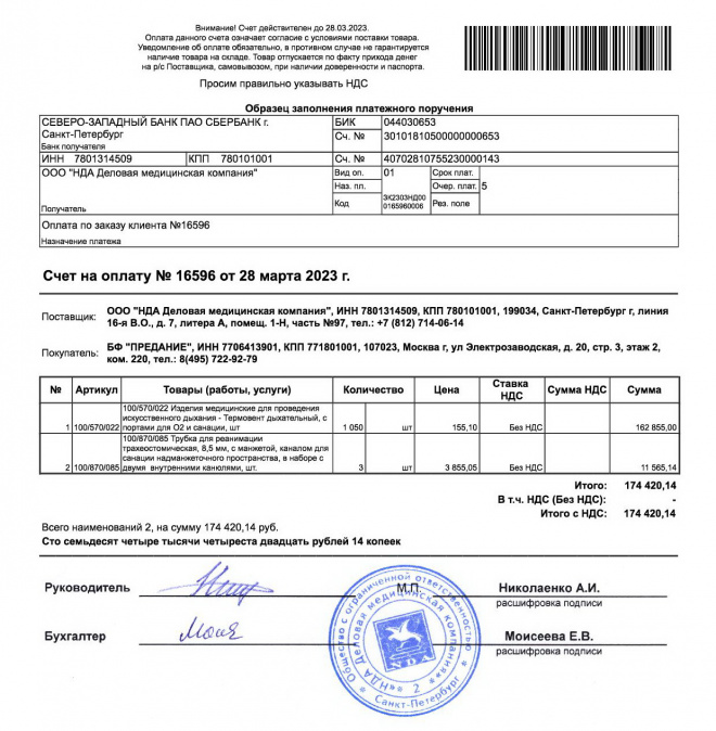 Пожертвование согласно ст.582 ГК РФ. Без налога (НДС)