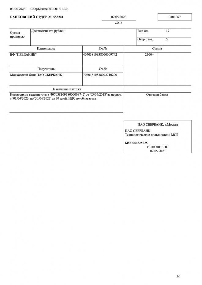 Комиссии по обслуживанию банковских счетов в мае 2023 г.