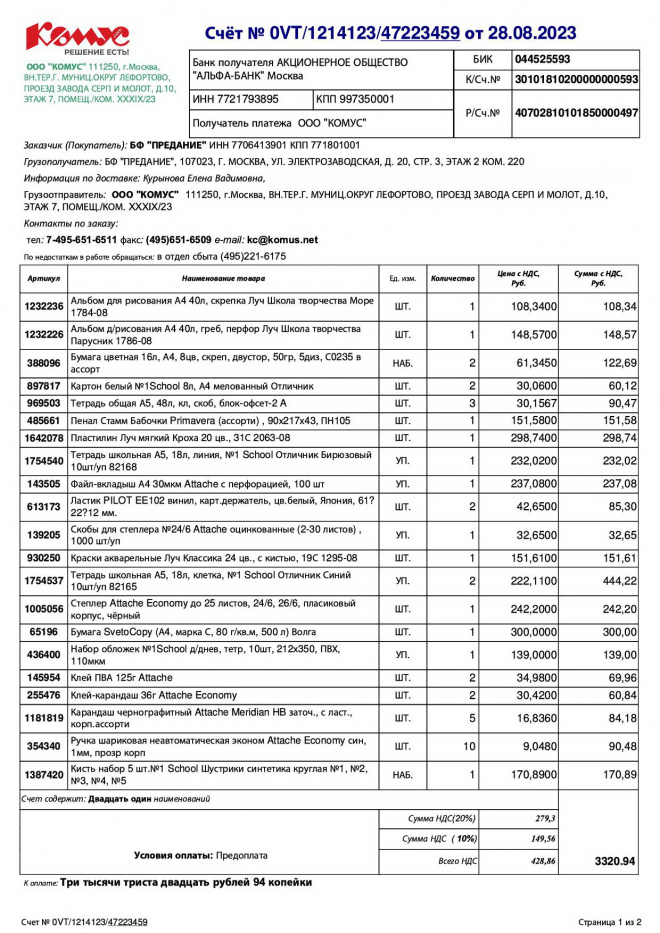 Оплачена покупка школьных товаров ребенку-инвалиду Даше Курыновой