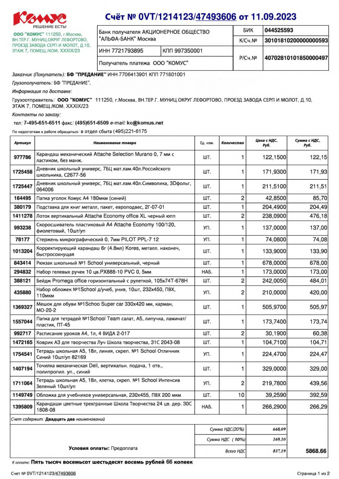 Оплачена покупка школьных товаров ученикам из семьи Курмашевых, воспитывающей ребенка-инвалида