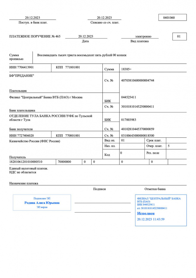 Перечислен аванс по заработной плате сотрудникам за декабрь 2023 г.