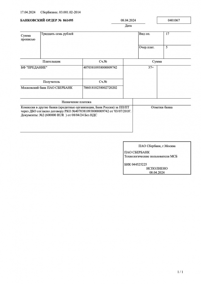 Комиссии по обслуживанию банковских счетов в апреле 2024 г.