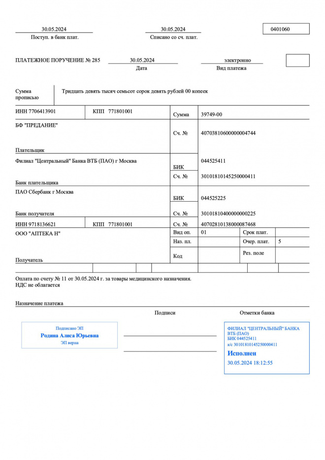 Оплачена покупка лекарств одинокой пенсионерке Людмиле Николаевне Кретовой, страдающей рядом заболеваний
