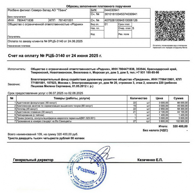 Оплачен курс реабилитации Милены Пешковой в центре "Родник"