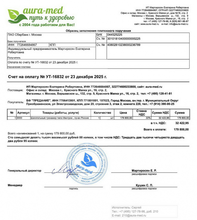 Оплачена покупка шагательного тренажера типа Имитрон Алексею Вараксину