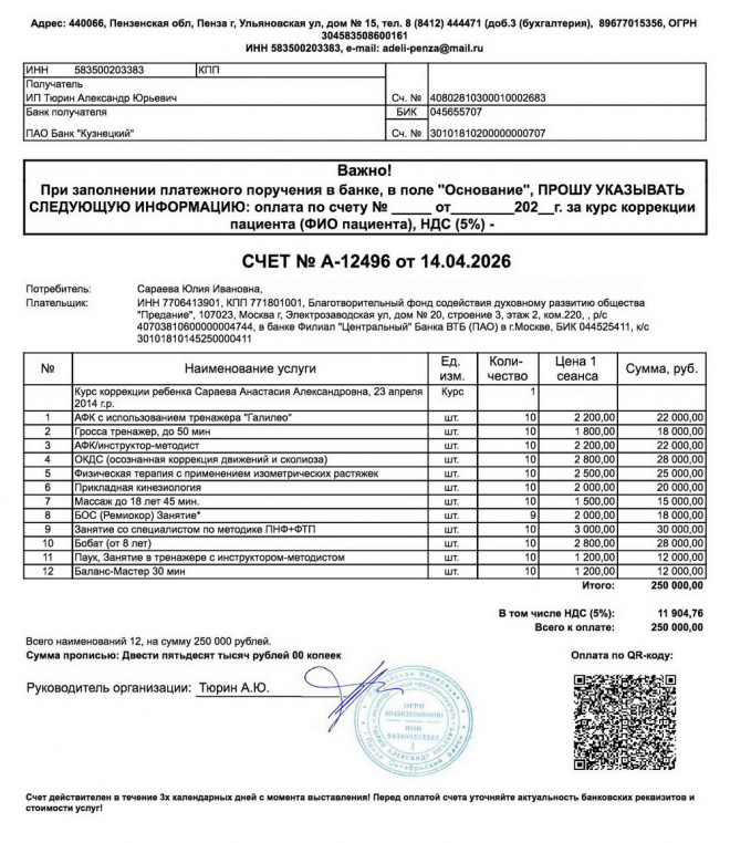 Оплачен курс реабилитации Насти Сараевой в центре "Адели-Пенза"