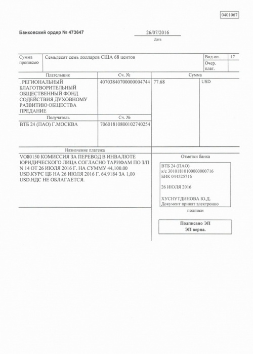 По итогам лечения произведен окончательный расчет за операцию и лечение Людмилы Пименовой в индийском госпитале "Фортис"
