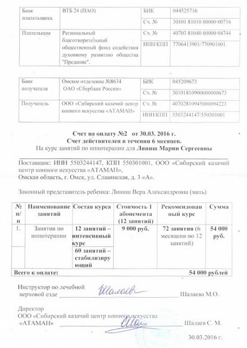 Оплачен курс занятий иппотерапией Маши Линиш