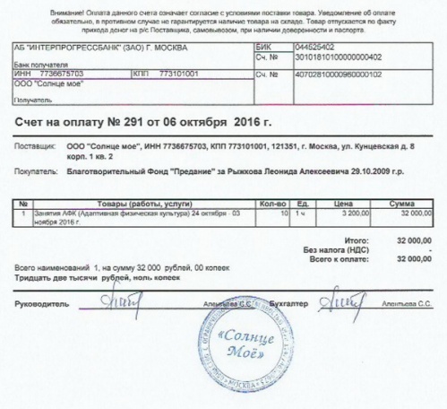 Пожертвование согласно ст.582 ГК РФ. Без налога (НДС)