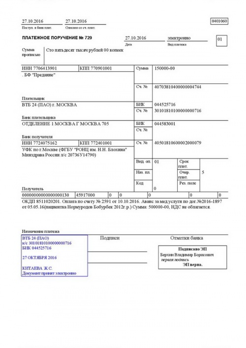 Собранные средства переведены в Российский онкологический центр им. Н.Н. Блохина в счет оплаты лечения Бобура Нормуродова