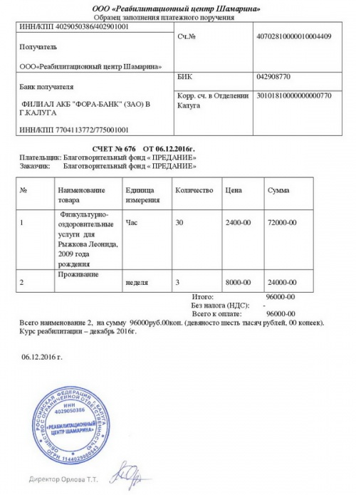 Оплачен курс реабилитации Лёни Рыжкова