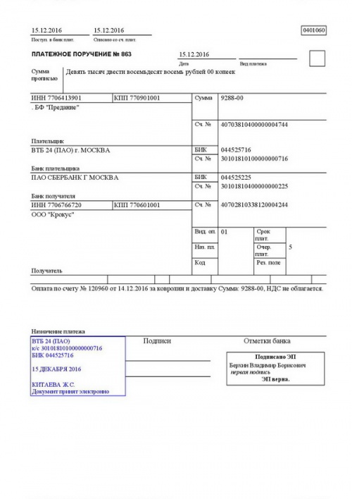Пожертвование согласно ст.582 ГК РФ. Без налога (НДС)