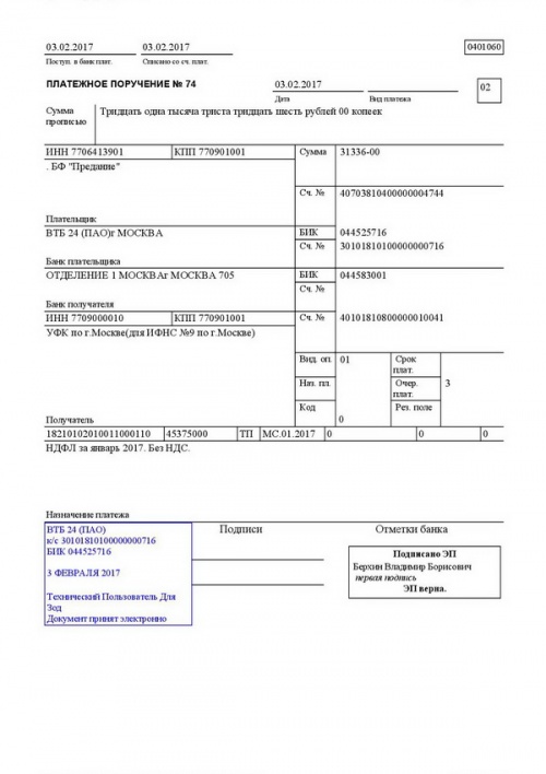 Перечисление налогов и взносов за январь 2017 года