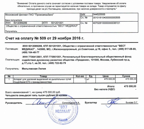 Пожертвование согласно ст.582 ГК РФ. Без налога (НДС)