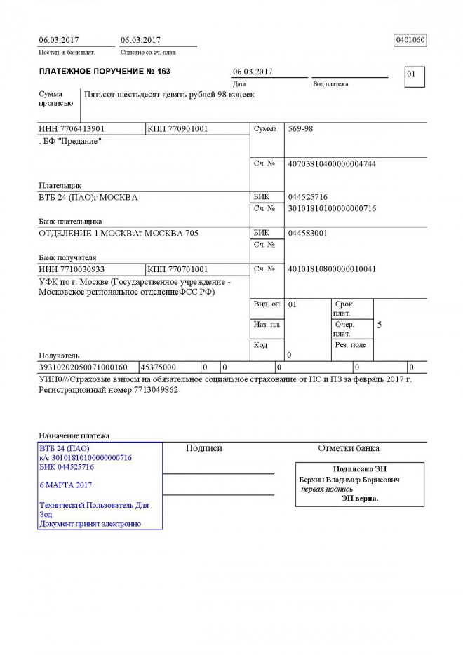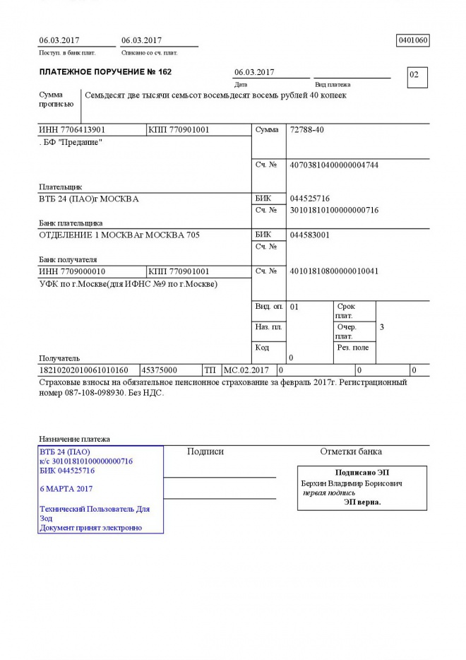 Перечисление налогов и взносов за февраль 2017 года