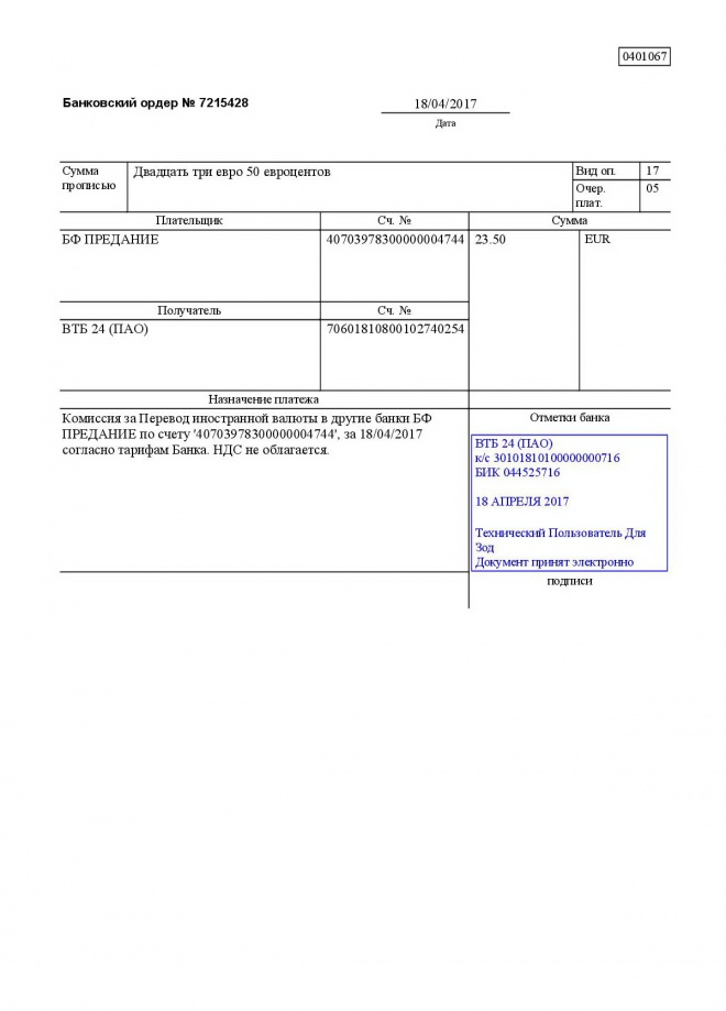 Пожертвование согласно ст.582 ГК РФ. Без налога (НДС)