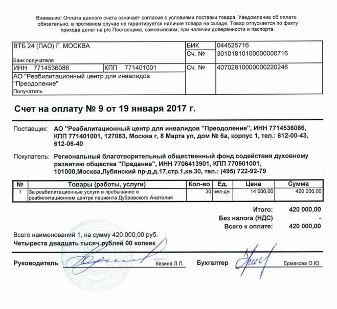 Оплачен курс реабилитации Анатолия Дубровского в московском центре "Преодоление"